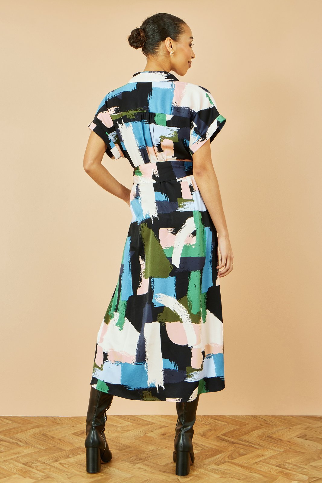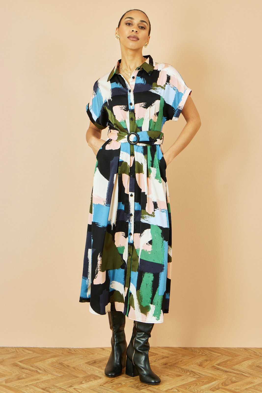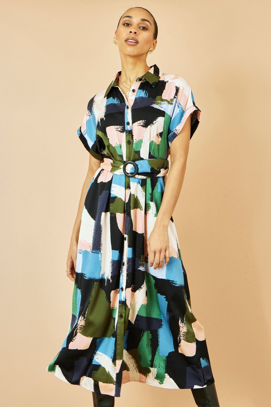 Αυτό το τολμηρό και όμορφο φόρεμα με ζώνη είναι ιδανικό για ντύσιμο από το γραφείο μέχρι το Σαββατοκύριακο. Το μεγάλο σχέδιο με πινελιά είναι μοναδικό και δίνει μια ξεχωριστή εμφάνιση. Το σχήμα του μανικιού με το κόμπωμα με κουμπιά δίνει σε αυτό το φόρεμα-πουκάμισο μια χαλαρή αλλά και κομψή ατμόσφαιρα. Φορέστε το με αθλητικά παπούτσια για εύκολη εφαρμογή ή συνδυάστε το με μπότες.